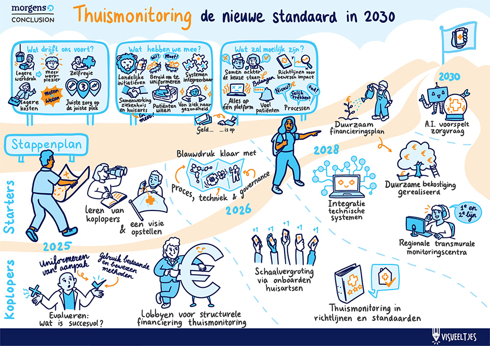 De zorg staat onder druk door een groeiende vraag, personeelstekorten en oplopende kosten. Thuismonitoring kan helpen deze uitdagingen het hoofd te bieden door patiënten meer regie te geven en professionals te ontlasten. In een brede bijeenkomst met zorgpartijen stelde Morgens een routekaart op: welke stappen zijn nodig om thuismonitoring net zo vanzelfsprekend te maken als internetbankieren?