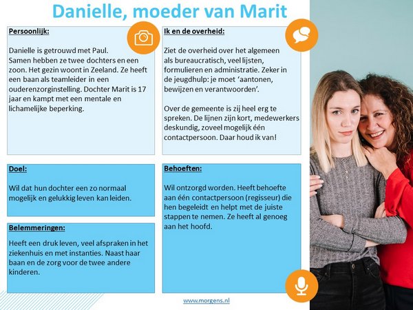 Voor de gemeenten Uden en Landerd heeft Morgens een klantreis uitgevoerd voor jeugdhulp. Zij zijn per 1 januari 2022 gefuseerd en nemen de inzichten vanuit de klantreis mee in het ontwerpen van de nieuwe werkprocessen voor de fusiegemeente Maashorst. Via twee persona’s zijn de behoeften van de inwoners inzichtelijk gemaakt. Het klantproces in de fusiegemeente krijgt daarmee gelijk meer smoel.