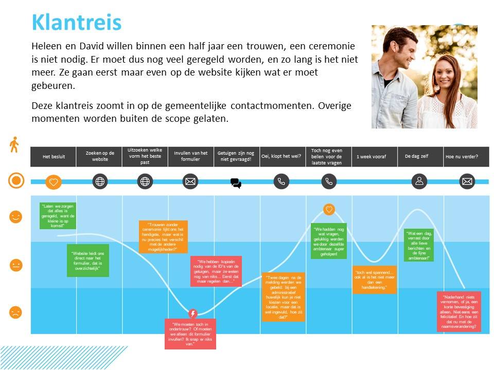 De klantreizen laten zien dat inwoners al heel tevreden zijn met de dienstverlening van de gemeente Heusden als het gaat om trouwen of verhuizen. Zo noemt een van de respondenten: “Mijn verhuizing was binnen zeven seconden geregeld!”.