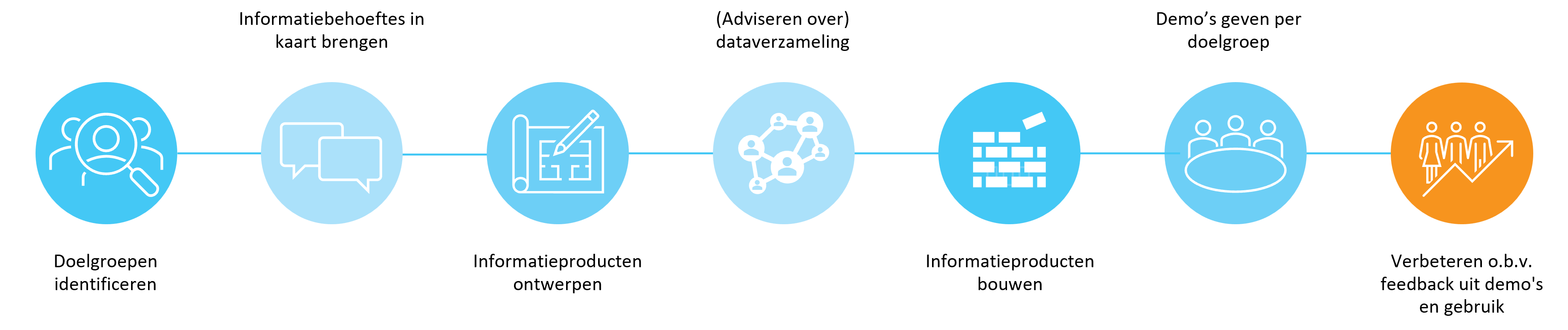 We hebben de eerste versies van de informatieproducten snel opgeleverd zodat we datagedreven werken direct tastbaar maakten en de gebruikers meteen aan de slag konden. De doelgroepen kregen hierdoor de kans om direct feedback te geven. Deze input verwerkten we in nieuwe iteraties van de producten, waardoor deze steeds beter aansloten bij de wensen van de gebruikers.