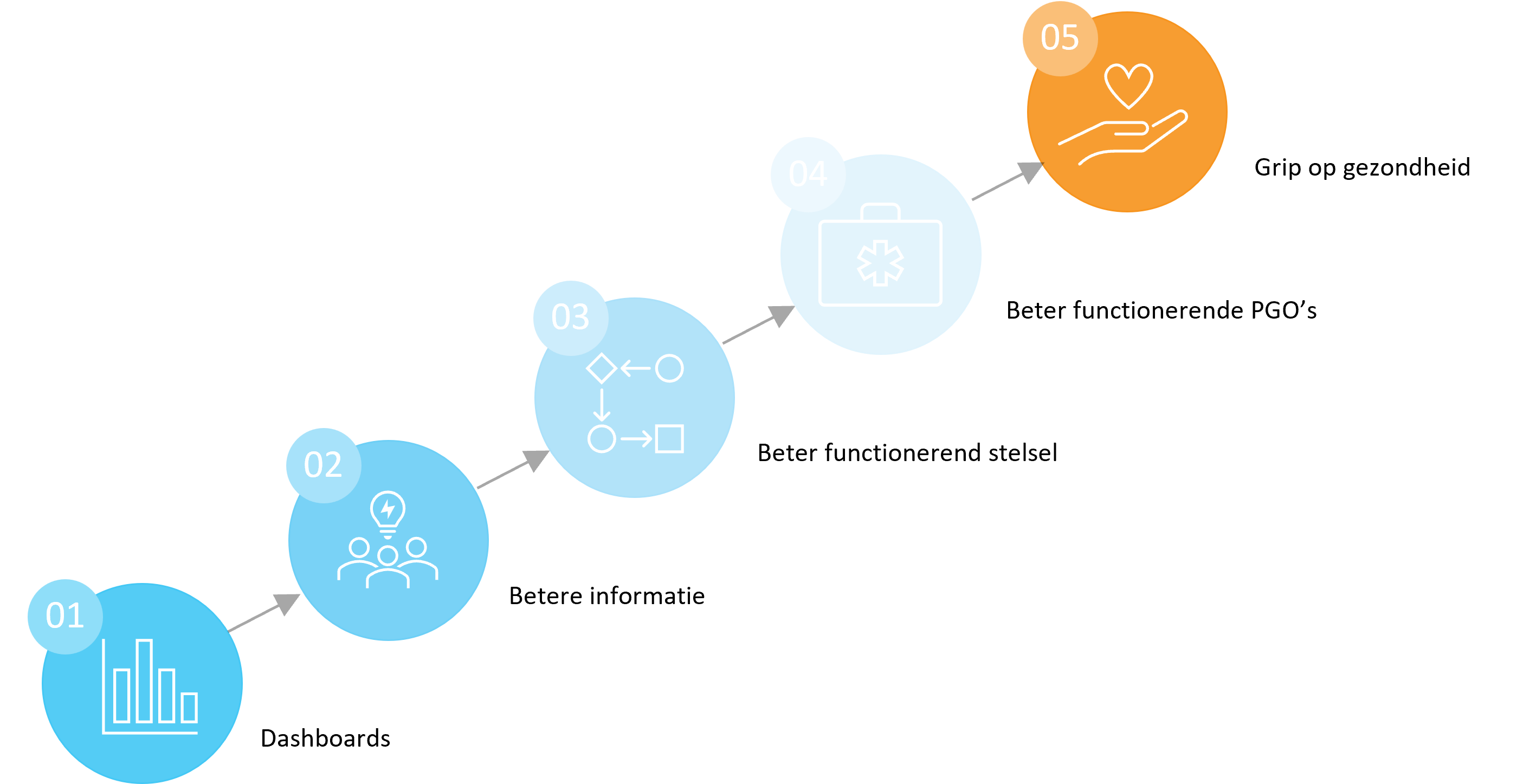 MedMij is in staat om de samenwerking binnen het MedMij-stelsel te optimaliseren aan de hand van data. Dankzij één centrale plek voor actuele stuurinformatie over het netwerk heeft MedMij op een gestructureerde manier inzicht in hoe de samenwerking tussen PGO-leveranciers en zorgaanbieders verloopt. De informatieproducten tonen de huidige stand van zaken, de eventuele knelpunten en het effect van verbeterinitiatieven. Ook kan MedMij nu sneller en gerichter ingrijpen bij verstoringen en proactief sturen op verbetering van de samenwerking. De dashboards dienen ook als gespreksstarter in overleggen en als basis voor besluitvorming. Met data onderbouwde inzichten helpen MedMij keuzes maken die het stelsel direct verbeteren.